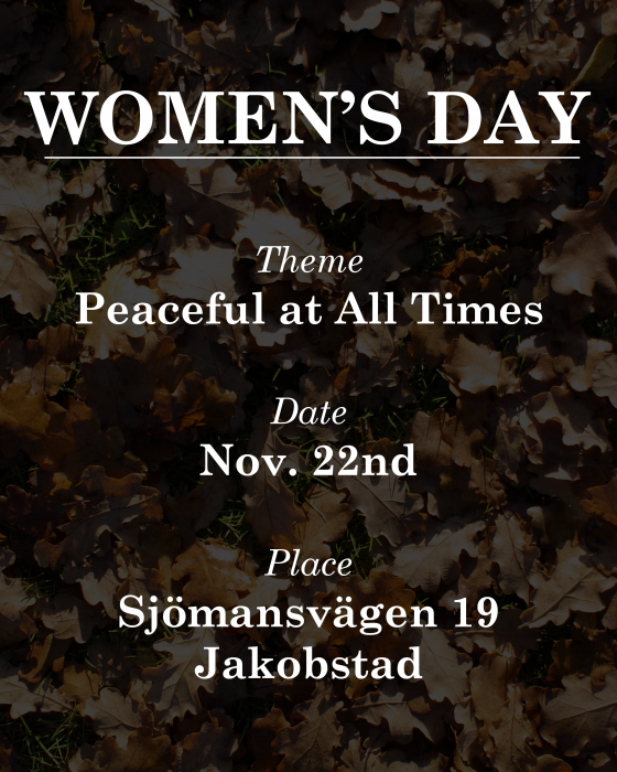The event is held at our church building on Sjömansvägen 19, Jakobstad. The closest train station is Jakobstad-Pedersöre train station.